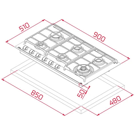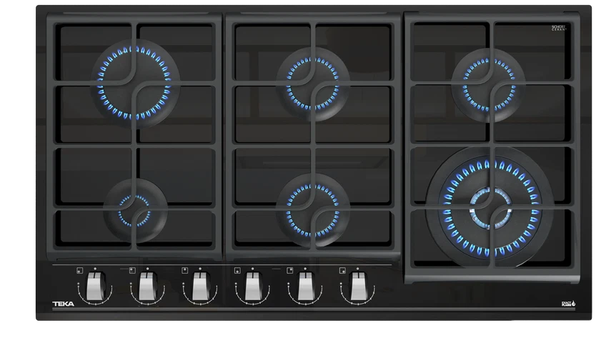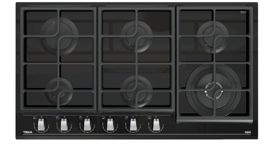 Cubierta a gas 6 Puestos 90cm Teka Cristal Negro - GZC96310XBB