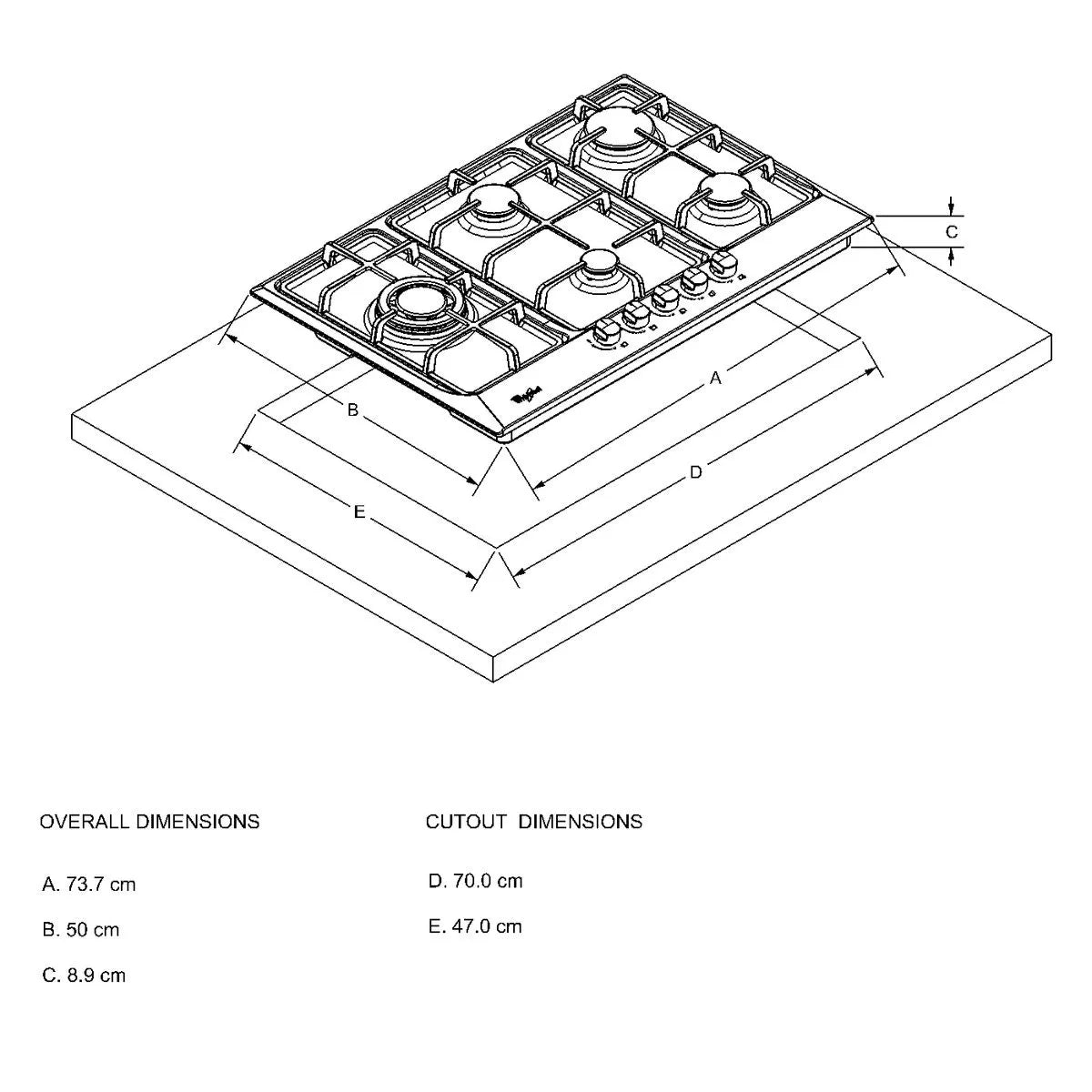 Cubierta a Gas Acero 75 cm Whirlpool - WP3040S