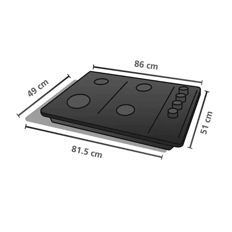 Su amplia superficie de 86 cm brinda el espacio perfecto para preparar múltiples platillos al mismo tiempo, optimizando el rendimiento y la comodidad al cocinar. Equipada con cinco potentes quemadores, cada uno diseñado para cumplir funciones específicas, permite adaptar la potencia del fuego a diferentes necesidades: desde una cocción suave y lenta hasta un hervor rápido y preciso.