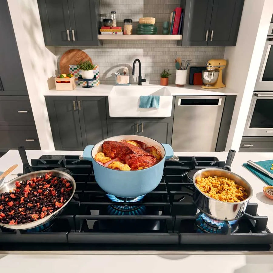 Cocina a gas sobre vidrio de 30": La más potente de su categoría, con un total de 56,200 BTU distribuidos en 5 quemadores individuales.