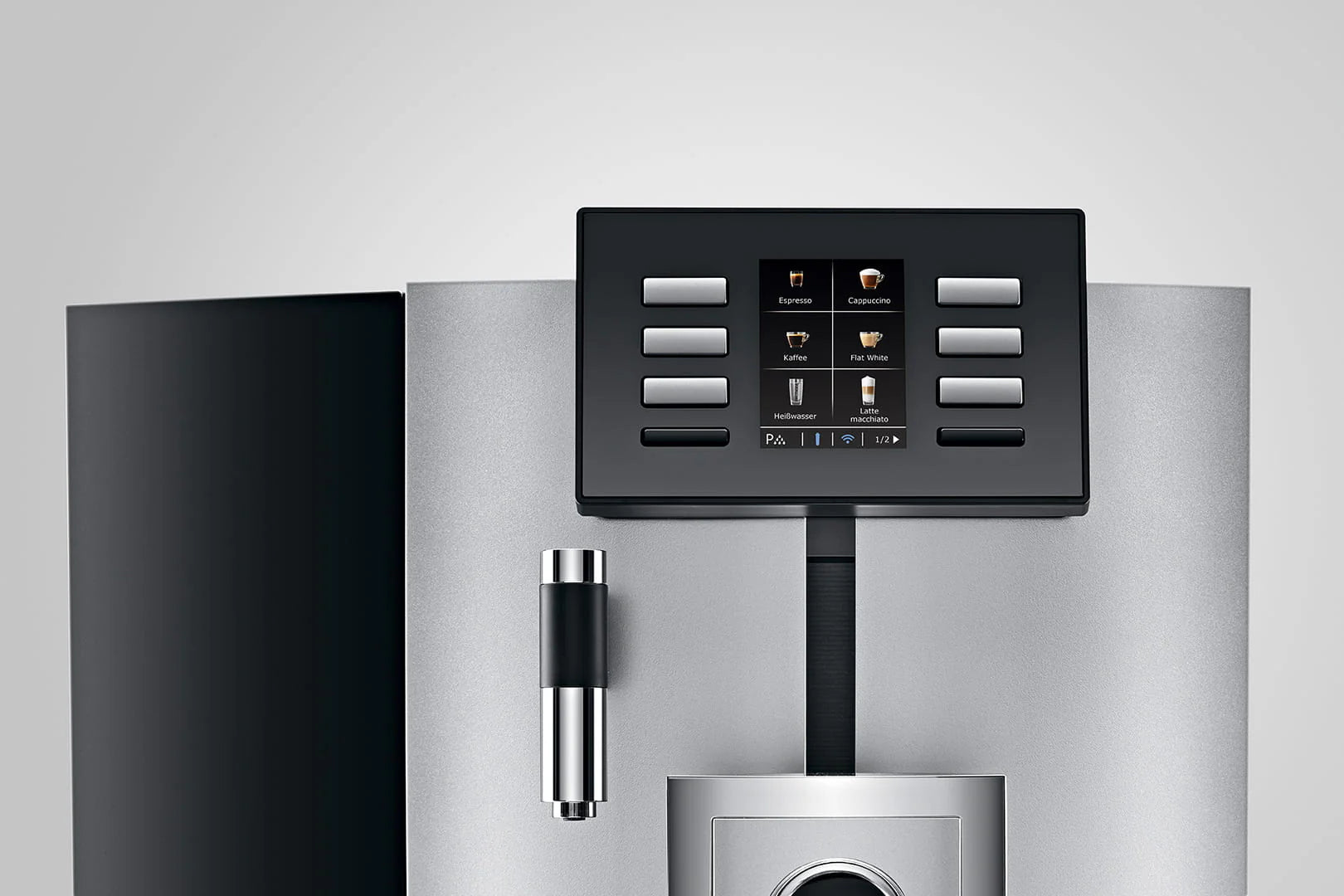 La Jura X8 no solo es potente, también es inteligente. Su pantalla a color con botones táctiles facilita la selección entre una amplia variedad de especialidades, y sus programas automáticos de limpieza y descalcificación mantienen la máquina impecable sin esfuerzo. Además, su gran capacidad de agua y café en grano la convierte en la aliada ideal para un uso frecuente o intensivo.