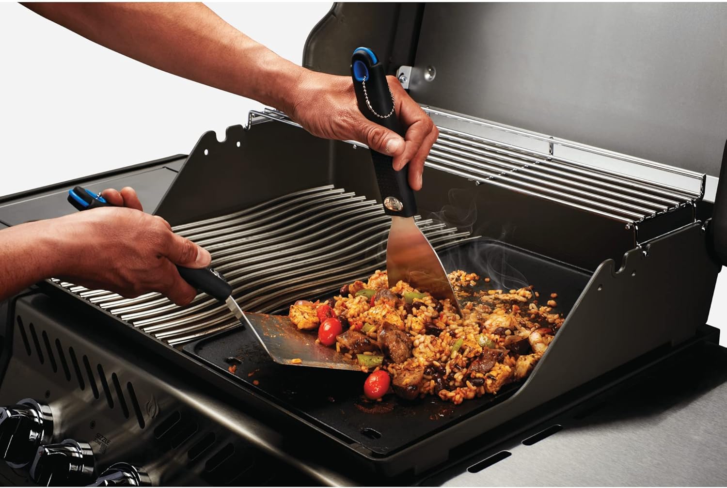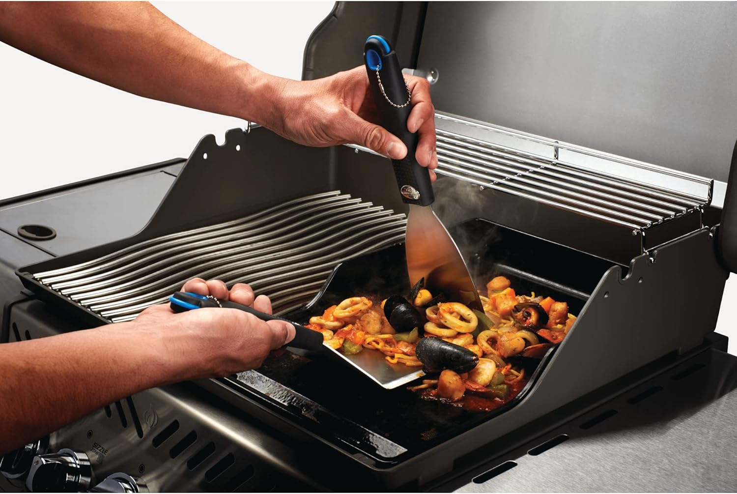 Cocine al estilo europeo con el juego de herramientas para plancha de 2 piezas de Napoleon, diseñado para acompañar la plancha de hierro fundido. La espátula de gran tamaño permite manipular fácilmente carnes, vegetales y todo tipo de alimentos, mientras que el raspador asegura una limpieza rápida y segura después de cada uso.